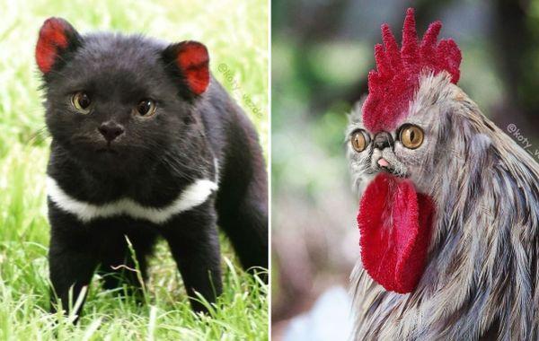 Девушка смешно фотошопит животных, подставляя вместо их мордочек кошачьи смешное? животные 25.03.2020 500