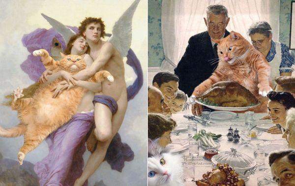 Художница добавляет своего рыжего кота в известные картины, и они обретают новый смысл арт 06.06.2018 1049