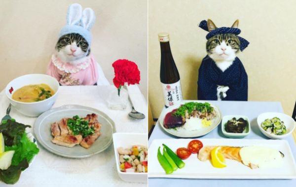 Японка каждый день наряжает своего кота к ужину, и это настолько же странно, насколько мило Животные 07.06.2018 997