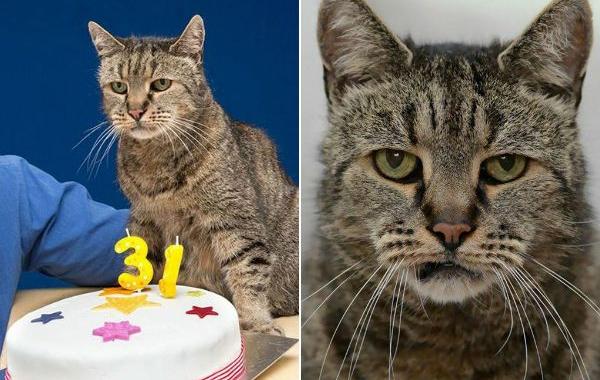 31-летний кот перенёс инсульт и готовится стать самым старым котом в мире коты и кошки 06.10.2016 1880
