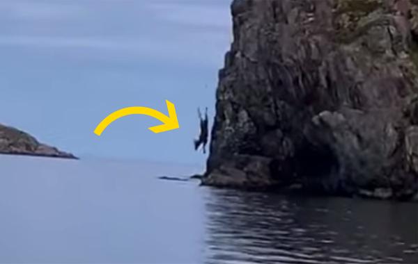 Лось прыгнул со скалы в воду и поплыл как ни в чём не бывало