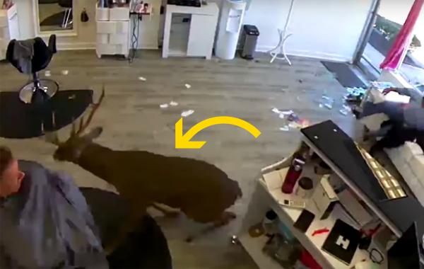Олень запрыгнул в парикмахерскую, разбив витрину рогами, и устроил полнейший хаос Животные 08.10.2019 311