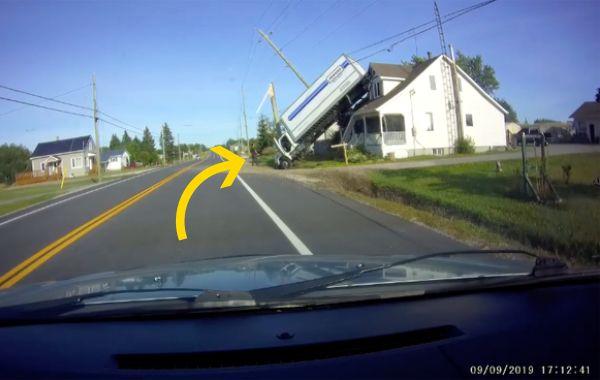 Кузов грузовика внезапно подлетел в воздух и приземлился на крышу дома. Как это произошло? Видео-приколы 13.09.2019 661