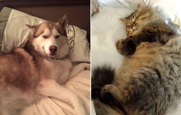 20+ кошек и собак, которые не против поваляться в хозяйской постели, пока никто не видит Животные 07.05.2020 725