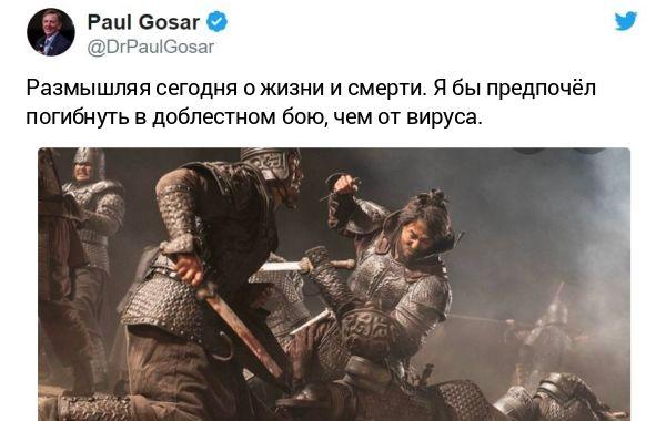 Американский политик Пол Госар стал мемом из-за своего нелепого твита о коронавирусе коронавирус 17.03.2020 217