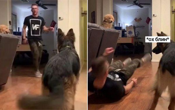 О чём говорят собаки, когда видят, как их хозяин рухнул на пол прямо перед ними Смешное 12.11.2019 737
