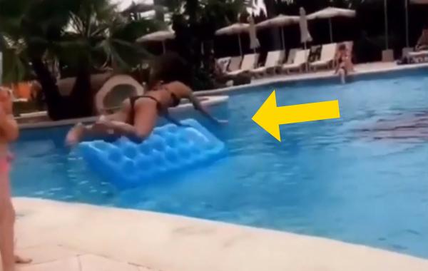 Девушка прыгнула на матрас, но он улетел и все неудачники этого лета чувствуют её боль Видео-приколы 09.08.2019 745