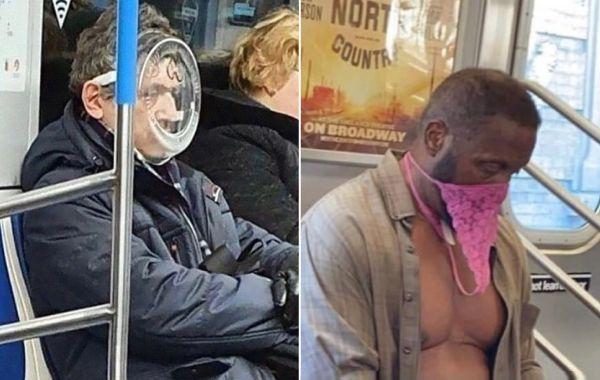 20 пассажиров метро в нелепых масках, сделанных из трусов, вёдер, подорожника и других неподходящих вещей Смешное 08.10.2020 52227