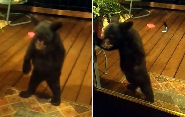 Любопытный медвежонок заглянул через дверь дома, но мама-медведица объяснила, что так делать не стоит Животные 18.08.2020 294