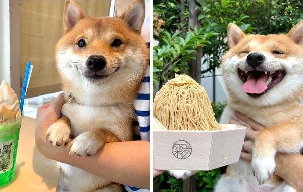 Сиба-ину Уни прославился своей улыбкой, которая становится шире, когда он видит еду Животные 22.09.2020 647
