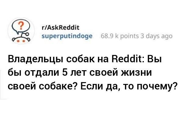 Кто-то спросил, отдадут ли владельцы собак 5 лет жизни питомцам, этот ответ стал вирусным Животные 06.03.2020 233