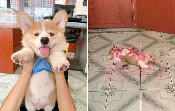 Владельцы испугались, решив, что их корги в крови, но всё оказалось куда более безобидней Животные 25.03.2020 1526