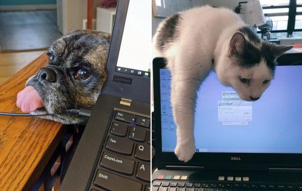 Люди вынуждены работать дома из-за карантина и вот как питомцы им помогают (нет) Животные 17.03.2020 562