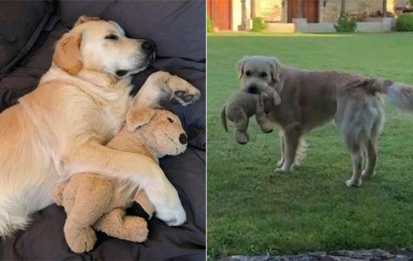 Золотистый ретривер повсюду носит свою маленькую игрушечную копию и даже выгуливает её Истории 02.07.2019 474