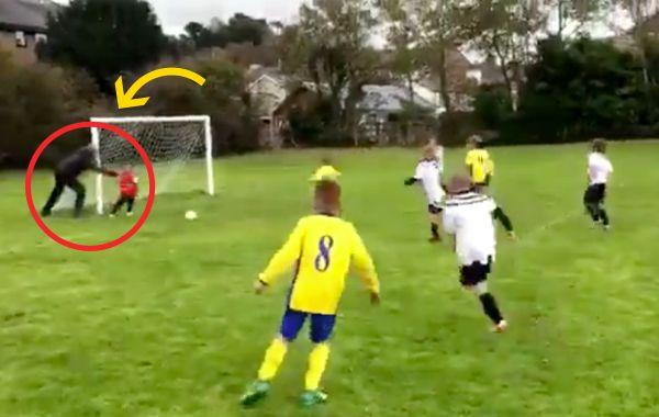 Этот папа так сильно переживал за игру детской команды по футболу, что отбил своим сыном мяч Видео-приколы 09.11.2018 418