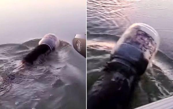 Медведь застрял головой в бочке и едва не утонул, переплывая озеро, но его вовремя спасли Животные 30.06.2020 596