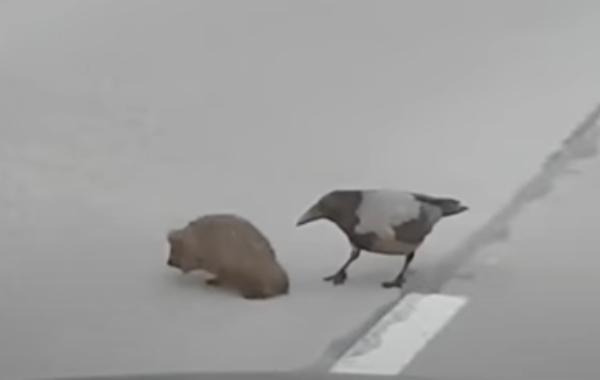 Видео с вороной, толкающей ежа, стало вирусным. Теперь люди спорят, зачем она это сделала Животные 25.05.2020 1035