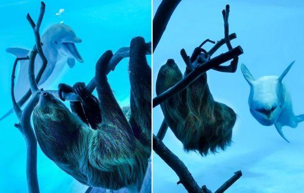 Дельфины из техасского океанариума увидели ленивца и чуть не сошли с ума от волнения Животные 03.04.2020 930