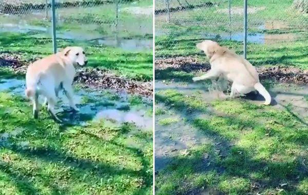 У этого лабрадора гипоплазия мозжечка, но это не мешает ему задорно танцевать в луже Животные 10.04.2020 581