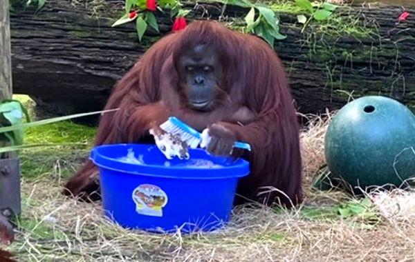 34-летний орангутан Сандра начала мыть руки, наблюдая за тем, как это делают ее смотрители Животные 03.04.2020 351