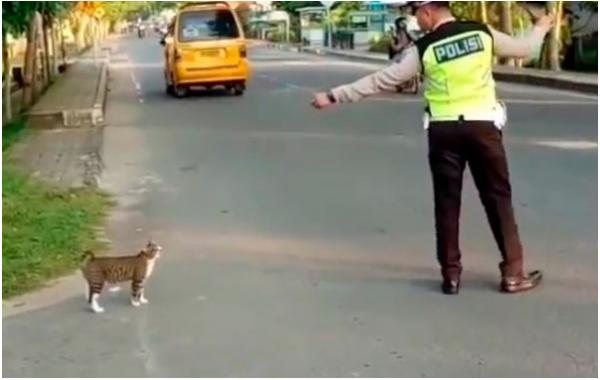 Индонезийский полицейский помог кошке перейти дорогу и это самое милое, что вы увидите люди 18.12.2019 275