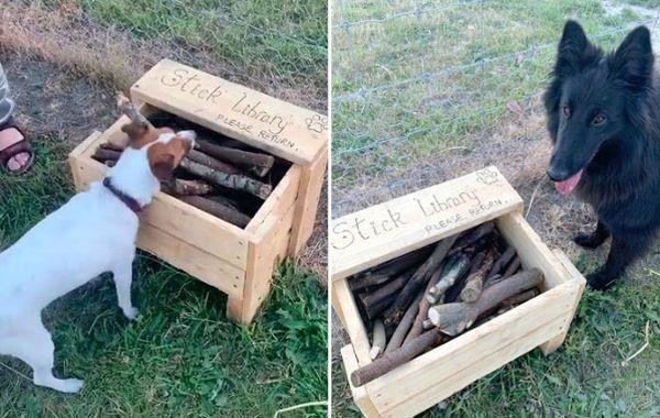 Мужчина сделал «библиотеку» для собак, где каждый пёсель может найти любимую палочку Животные 17.12.2019 160