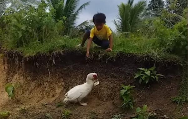 Маленький мальчик уронил шлёпанец, а утка изо всех сил пыталась его вернуть Видео-приколы 23.08.2019 430