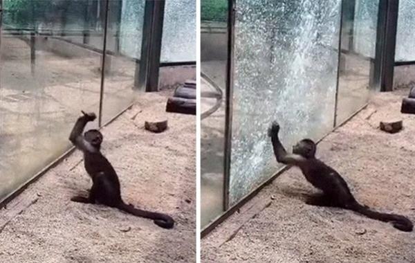 Обезьяна разбила стекло в своём вольере, чтобы сбежать, но сама испугалась случившегося Видео-приколы 30.08.2019 574