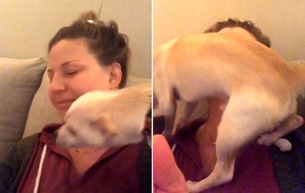 Пёс приревновал свою хозяйку к другой собаке и решил показать, что она только его весьма необычным образом Видео-приколы 17.12.2020 461
