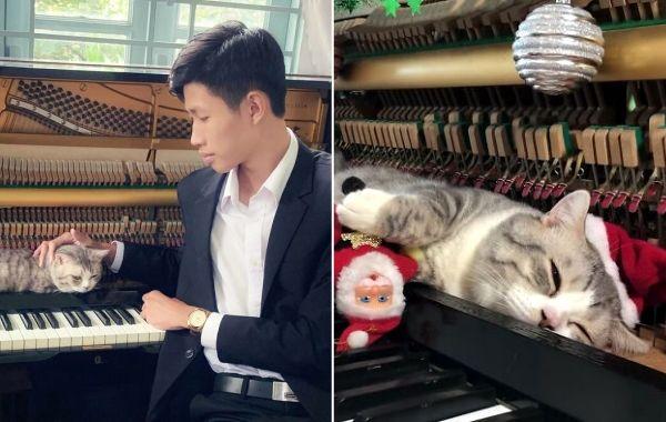 Кот получил массаж молоточками пианино, пока его хозяин играл рождественские песни Животные 28.12.2020 231