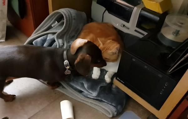 Собака пыталась отвоевать свою лежанку у упрямого кота, но всё было тщетно Видео-приколы 20.02.2019 597