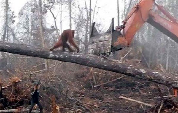 Душераздирающее видео орангутанга, сражающегося с экскаватором, разрушившим его дом Видео-приколы 18.06.2018 1869
