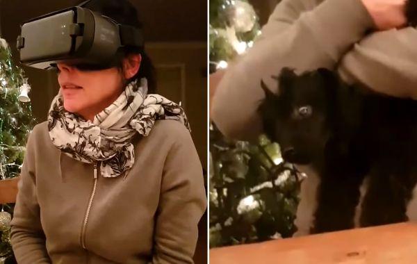 Женщина в очках виртуальной реальности случайно схватила собаку попой к верху и приласкала её Смешное 04.12.2017 1008