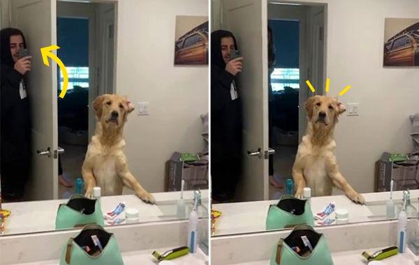 Забавная реакция собаки, пытающейся понять, как работают зеркала, чтобы найти хозяина Животные 15.07.2020 446