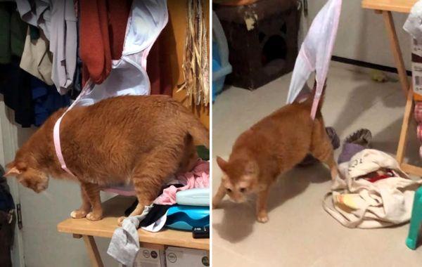 Пухленькая рыжая булочка запуталась в бюстгальтере. Она не может выбраться, а хозяйке смешно вм=идео 04.04.2019 704