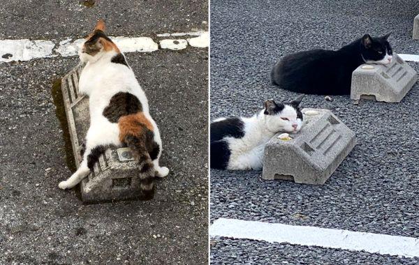 В Японии кошки используют парковочные барьеры как подушки, и это выглядит очень забавно Животные 31.07.2020 388