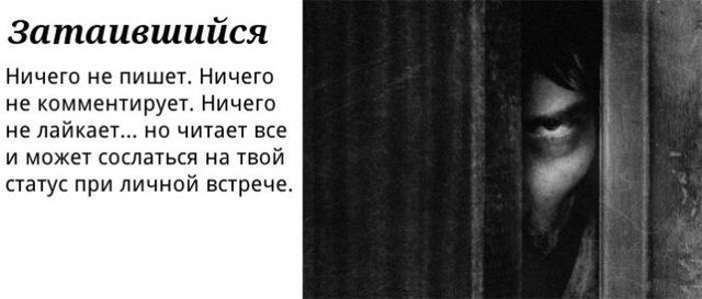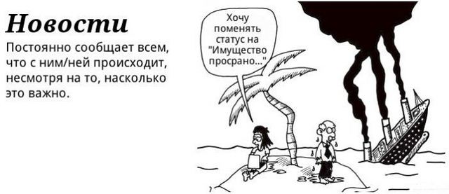 Типы людей, обитающих в социальных сетях интересное Смешное юмор смех 16.09.2012 1049 Интересное описание разных типов людей, которые постоянно посещают социальные сети. Как по мне, так оно и есть :) Поделиться в соц. сетях